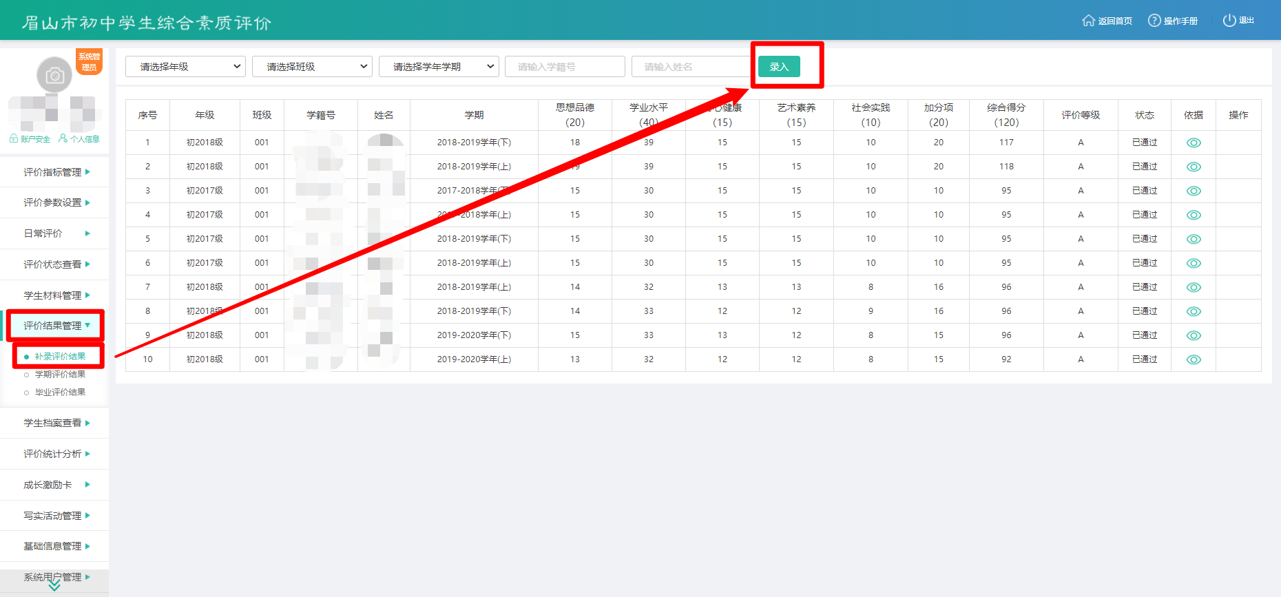 新转来的学生如何补录评价?