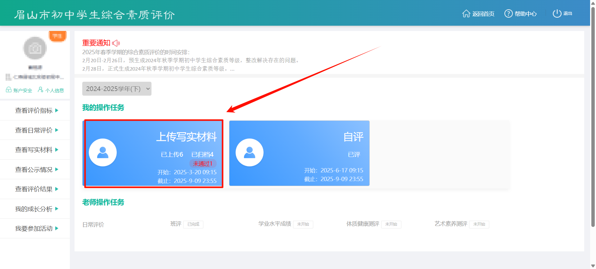 - 学生端:进入【上传写实材料】-【去上传】-【从班级相册选择】