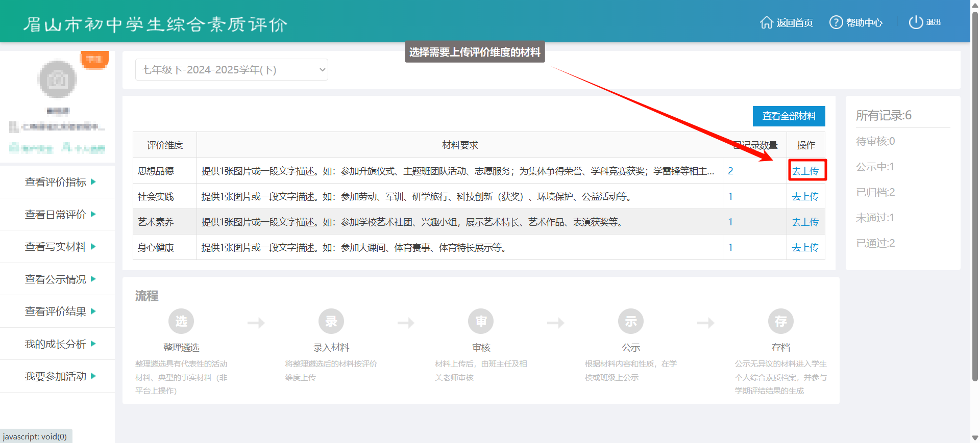 - 登录平台,进入【上传写实材料】页面;